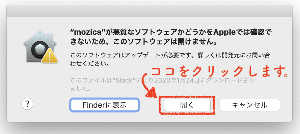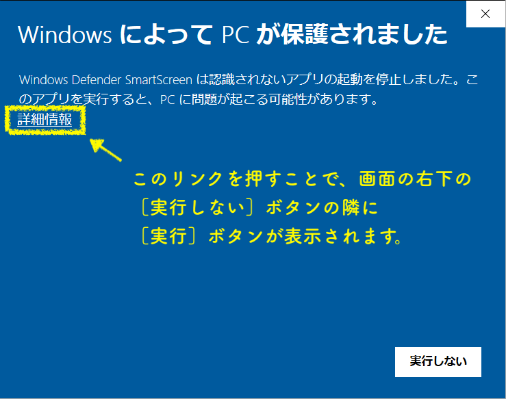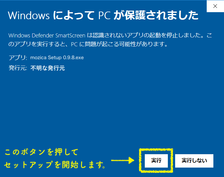 保護機能によって警告が表示された場合は、下記手順でセットアップを進めて下さい。